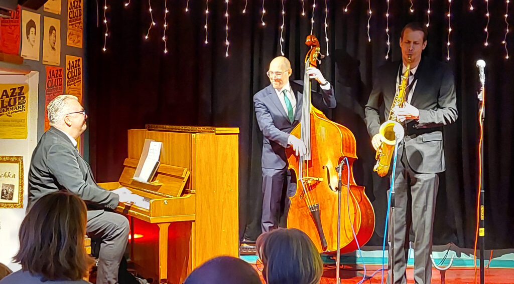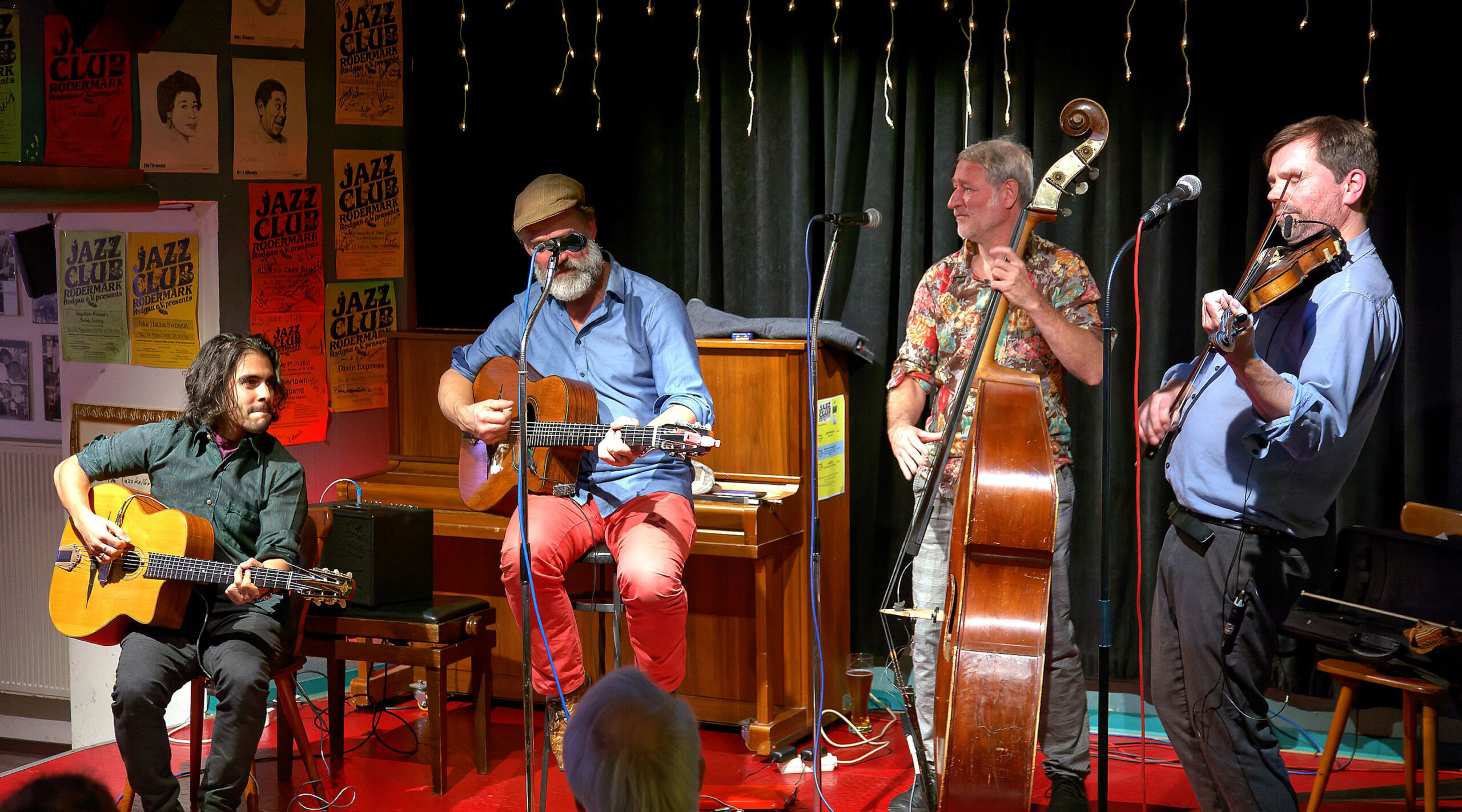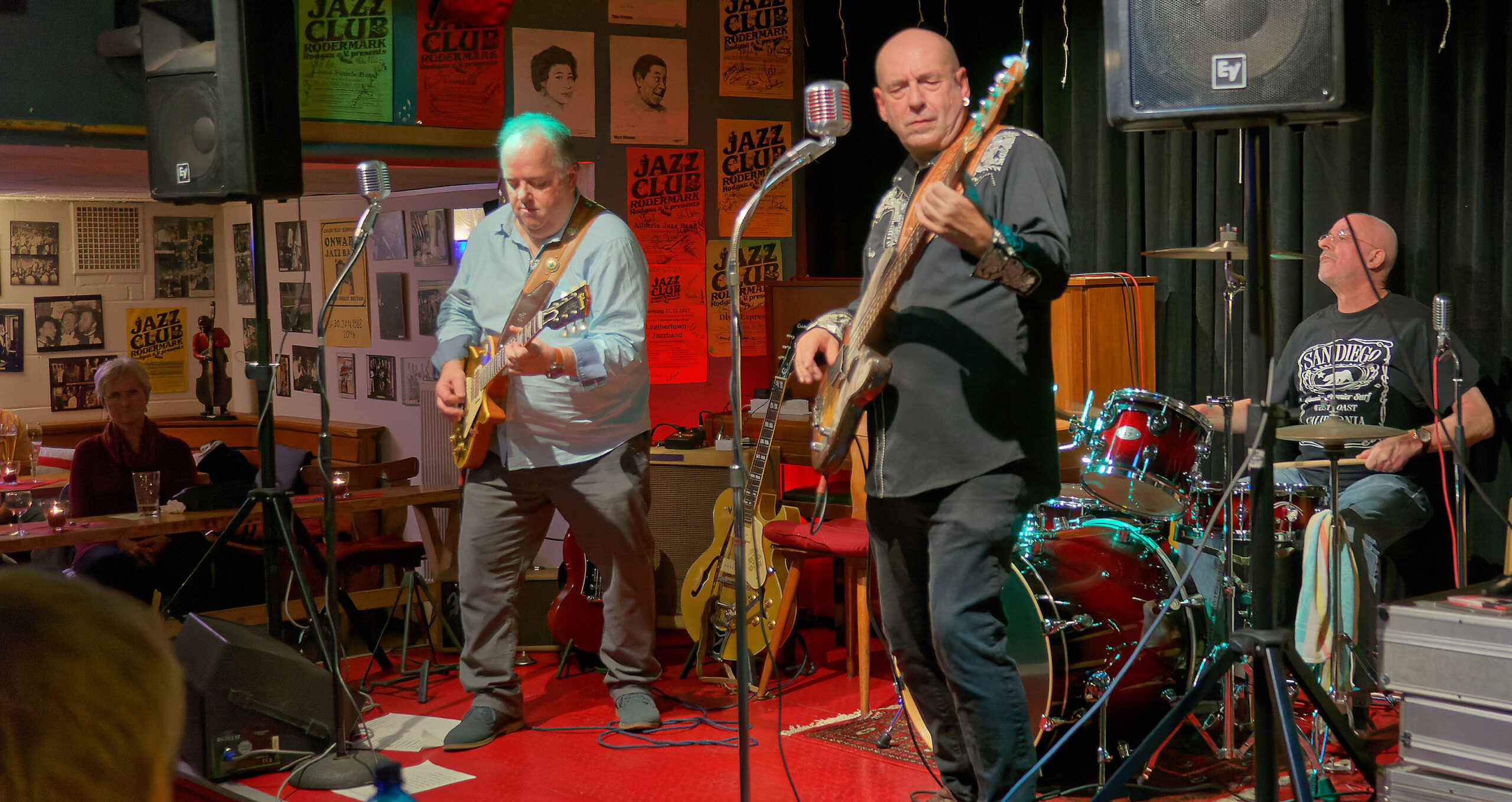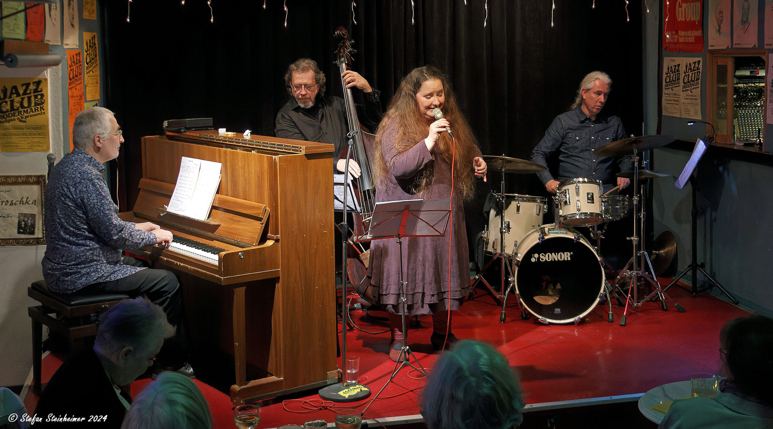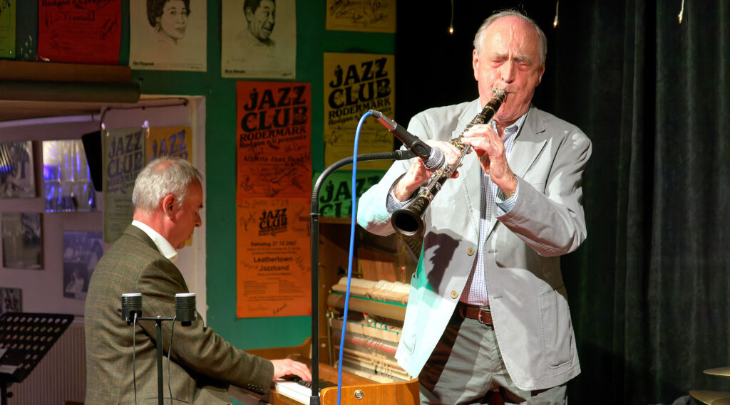 Der Jazzclub präsentierte das Berry Blue Quartett mit ihrem neuen Programm: „Swing Tanzen … Erlaubt!” Auch wenn das Tanzen der Zuhörer leider ausfallen musste, zogen die von Christoph Aupperle und Julian Keßler neu arrangierten Klassiker altbekannter Swing-Hits bis hin zu Stücken der Beatles die Zuhörer ungehindert in ihren Bann. Mit ihrem unverwechselbaren Sound und einem mitreißenden Programm spielten Hans Rück (as, ss), Siegfried „Berry Blue” Kesseler (voc, perc ) Christoph Aupperle (p) und Julian Keßler (g). An diesem Abend blieben die Füße, wenn auch unter den Tischen, in Bewegung. „Swing Tanzen” im Sitzen ist immer erlaubt.