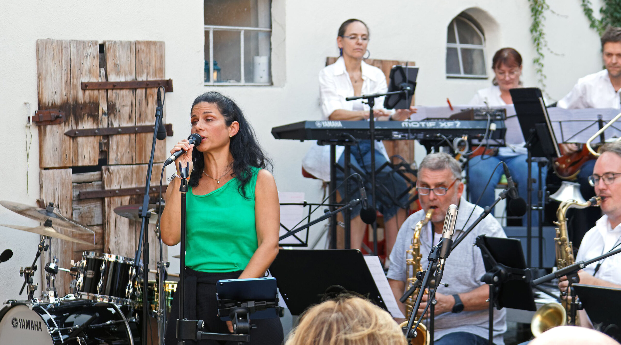 Ein überragender Alberto „la voce” Colucci an der Stimme begleitet von Thomas Kullmann am Schlagzeug, Horst Bittlinger am E-Piano und Roland Ulatowski am Kontrabass nahm die Besucherinnen und Besucher im Dinjerhof in Ober-Roden mit auf eine virtuelle Reise nach Italien; temperamentvoll und authentisch zugleich, wie es nur ein „Italiano vero”, ein richtiger Italiener, kann. Es erklangen die bekanntesten und besten Klassiker von Adriano Celentano, Rocco Granata, Zucchero und vielen anderen bekannten Italienischen Sängern, mit Schwerpunkt auf den 50er und 60er Jahren des letzten Jahrhunderts. Bei „Lasciate mi cantare” und „Azuro” fühlte sich der ganze Dinjerhof wie in Italien im Urlaub und bewegte sich begeistert auf dem Stuhl mit.